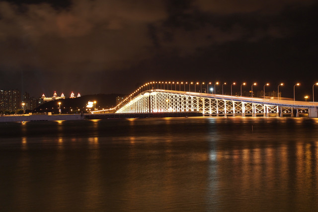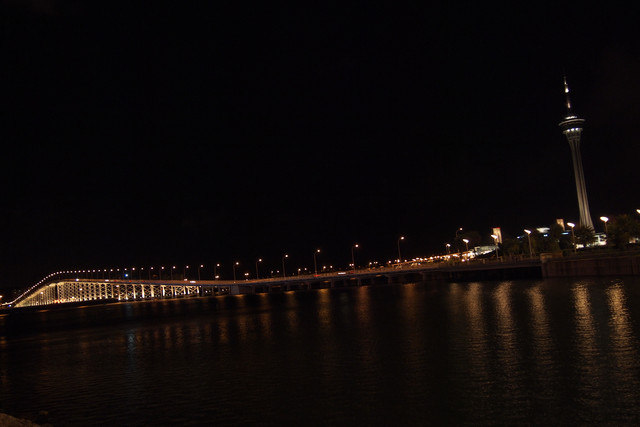 話說,從媽閣廟看澳門旅遊塔就僅是一個西灣、一座大橋之隔,