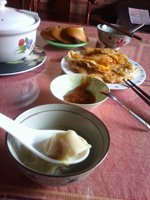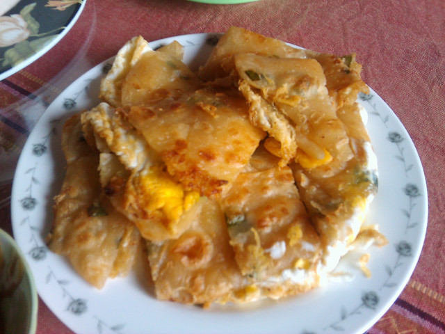 每天的早餐都很澎湃,前兩天吃廣東粥配包子饅頭、配燒餅,最後一天大換口味,蛋餅是新面孔^^