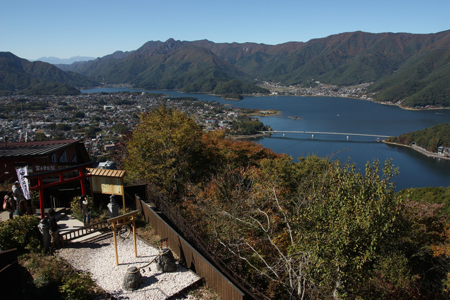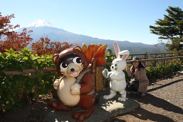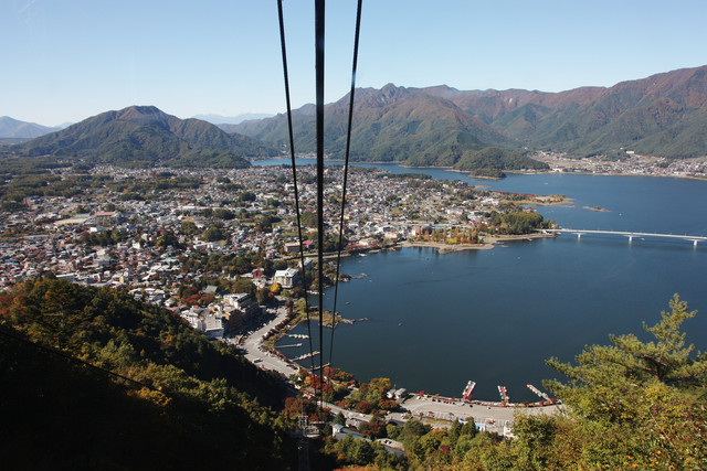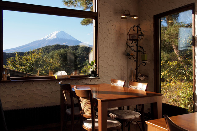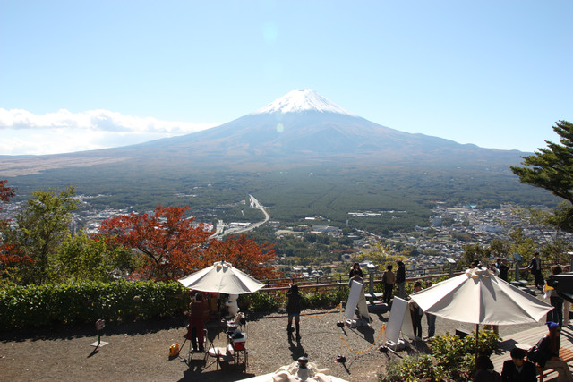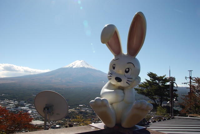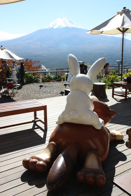 所以吃完早餐,便請民宿老闆載我們去河口湖驛,