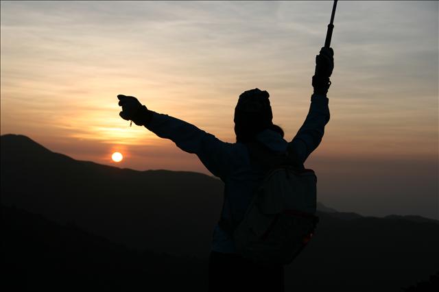 原本以為來不及到向陽山看日出了,沒想到卻意外在大崩壁看到緩緩升起的初陽,Lucky!